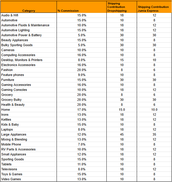 Displaying your products on the JUMIA website is completely free, but there are costs and fees associated with receiving and processing orders. On this page, you will know the details of all the fees and expenses when selling on JUMIA. Selling fees on JUMIA differ depending on the product category and the shipping method you use to deliver.